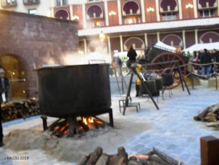 Paral·lelament també es celebra un mercat d’artesans, tots dos esdeveniments es celebren en el marc dels carrers del centre històric de la vila i a l’emblemàtica plaça de la Font del Lleó, amb la seva aigua a 74º; en aquesta plaça es duu a terme el fet més singular d’aquesta fira, la preparació del brou de Nadal amb carn d’olla en una gran olla de 1,5 metres de diàmetre i 1600 litres de capacitat, amb aigua termal i en foc de llenya; per a la seva elaboració, col·laboren diversos restaurants, carnisseries, xarcuteries i botigues de verdures locals; enguany està previst fer dues olles de brou, per la qual cosa seran més de 3000 litres de brou; tots els dies de la fira es podrà degustar i comprar brou, fins a la fi d’existències, es recomana portar got propi.