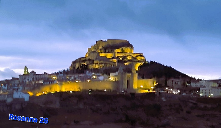 Per visitar el Castell d’origen muslmá, (visita de pagament), sortim de la Plaça de Sant Miquel, passant per davant del museu del dinosaures, i pugem per la Costa del Trinquet, fins el carrer Castell, allí tenim que anar a la Plaça de Bous, on esta la guixeta on venen les entrades; des d’allà mateix podrem veure la Torre del Panto, del XIV amb 3 nivells i teulada a dues aigües; des de la guixeta començarem a pujar per el camí senyalat, resseguin la Barbacana fins pujar al primer nivell del castell, passant per les restes de la Primera Porta,  una mica mes enllà, a la muralla, veurem la Porta Ferrissa, d’origen musulmà , esta tancada amb una reixa de ferro, segons la tradició es per on va entrar Blasco d’Alagó  quan va conquerir el castell; seguim per la dalt la barbacana fins arribar a la Porta de la Barbacana, segona porta del castell, al costat te un cos de guardià d’època carlina; seguim per el camí espitllerat, fins arribar a la Porta Principal, situada a la base d’una torre del XV, per allà s’accedeix al segon nivell del castell; aquí veurem el Palau del Governador, un edifici del XVIII que inclou estàncies integrades a la roca; des d’aquí seguim el camí que circumval·la aquest segon nivell, fins arribar al altre costat on trobem el Polvorí, seguim el camí i arribem a un reco amb dues torres reformat recentment, la Torre de Sant Francesc, situada a la muralla, per damunt del convent del mateix nom, i per on s’accedia al castell abans des d’el convent, i la Torre Pardala del XIV adossada a la base del tercer nivell del castell; per el camí passem per els allotjaments de tropa i la presó del Catxo;  reculem fins el polvorí, i al costat esta l’escala d’accés a la porta i túnel d’accés de Plaça d’armes, en el tercer nivell del castell, envoltada per residencia d’oficials, de tropes, i la Torre Celoquia, del segle VIII, original dels musulmans, reconstruïda, al XVI, destruïda per els francesos el XIX, al centre de la plaça hi ha un Aljub d’origen romà, amb un brocal renaixentista, que encara te aigua; gran part d’aquest elements estan enrunats, però poc a poc es van refent, aquí podem donar per acabada la visita a aquesta vila; això si no marxeu sense tastar els típics Flaons de requeson.