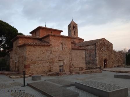 Temple de Sant Miquel: Esta entre les dues esglésies, tot i haver estat restaurat entre el S.X i XI, es el que mes conserva el disseny original, del segle VI, planta quadrada de creu grega, l’absis es d’exterior poligonal (8 cares), el cimbori central esta sostingut per 8 columnes de les que 4 tenen capitells tardo romans, y el paviment es original del VI, al absis es poden veure pintures murals dels segles VI-X i XI; la façana sud va ser reconstruïda al XVII. Era un temple funerari, tot i que, al segle XIX, es pensava quera un baptisteri; te una cripta (la de Sant Celoni), amb capella absidal trilobada, la tomba va ser profanada; es creu que va ser panteó d’un Sant no identificat.
